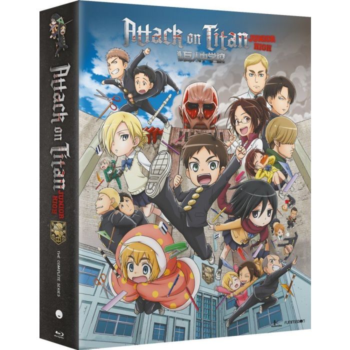 Your favorite characters from Attack on Titan are back in...junior high school? Adapted from the hit spinoff manga series Attack on Titan: Junior High (written by Saki Nakagawa), this parody reimagines Eren, Mikasa, Armin, and other characters from the original manga as students and teachers at Titan Junior High School.